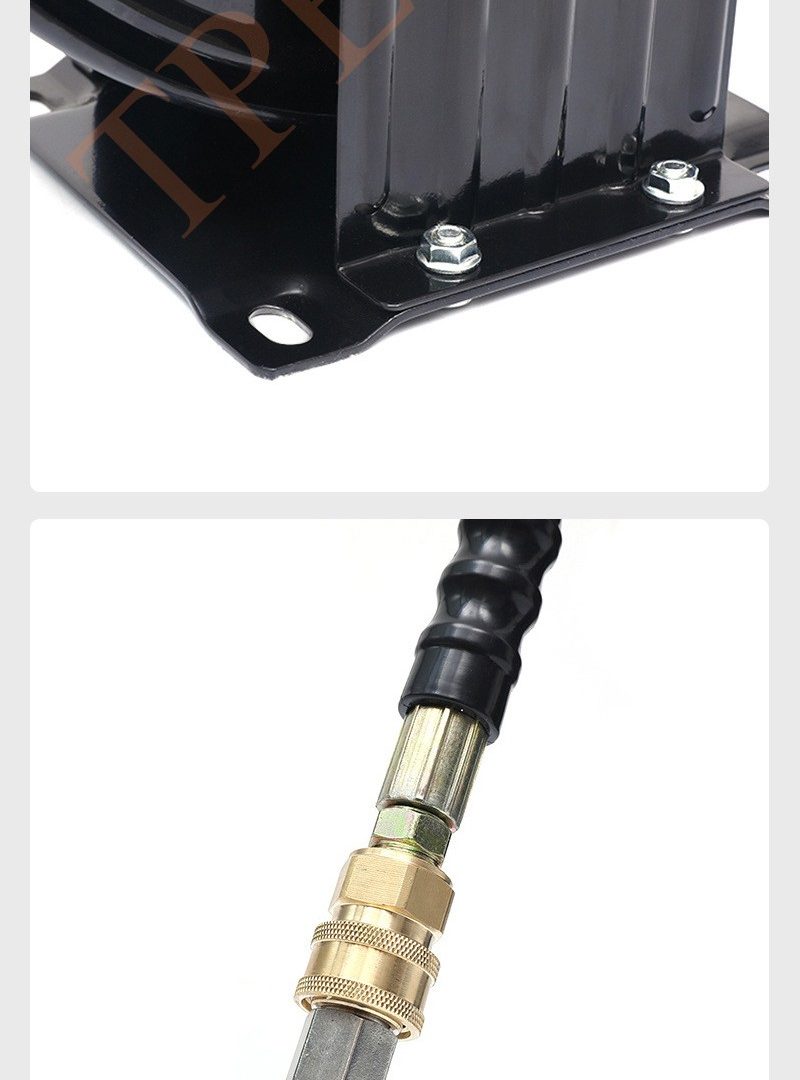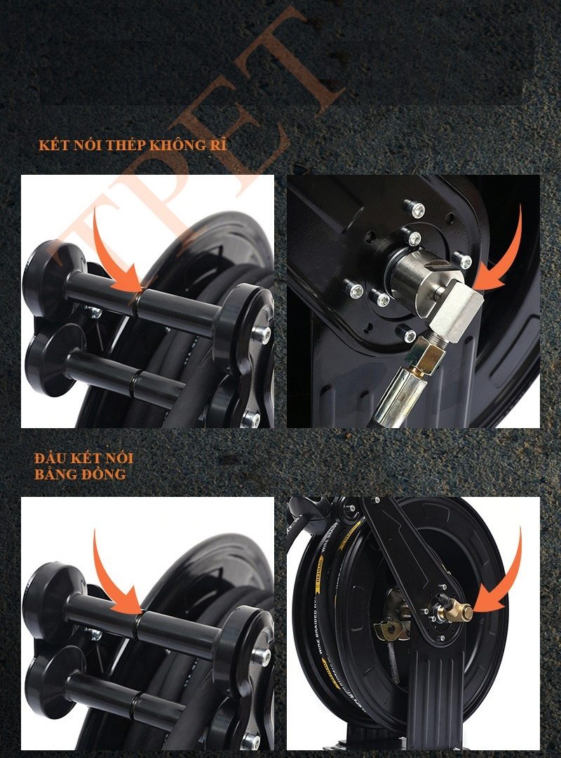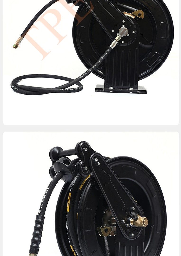 - Cuộn dây nước áp lực cao tự thu dùng cho máy rửa xe có thể được lắp treo trên trần hoặc tường xưởng, hoặc trực tiếp trên máy rửa xe cao áp.