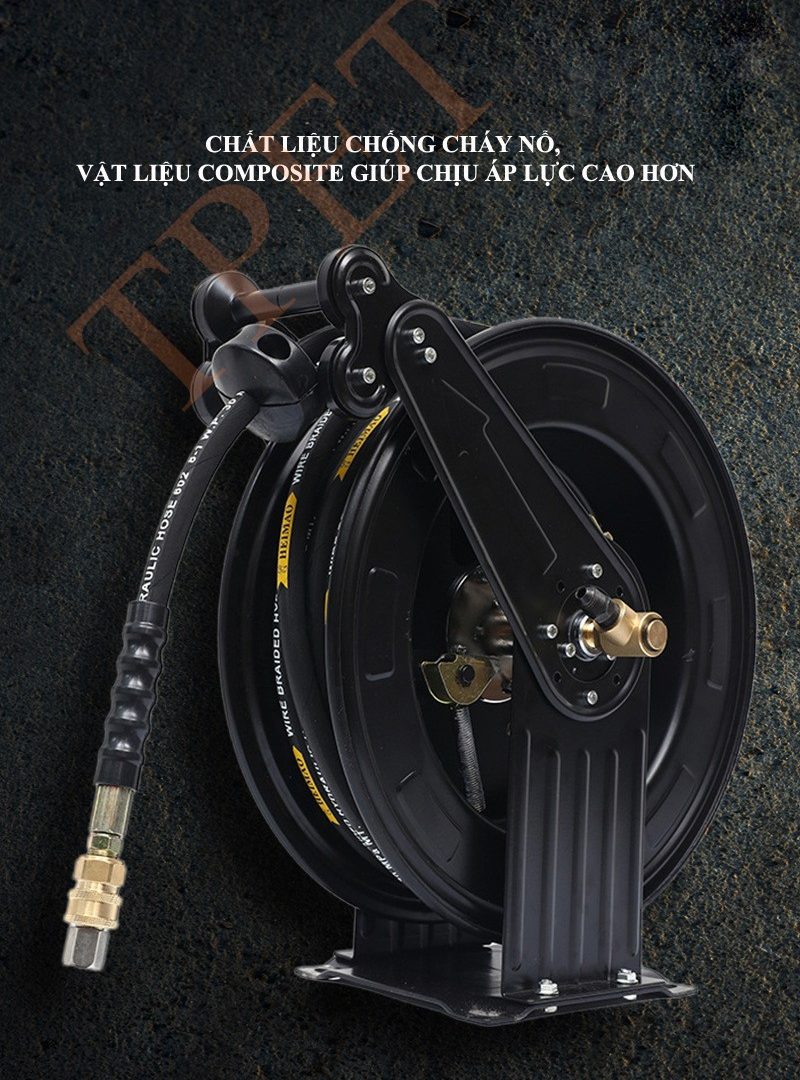 - Cuộn dây nước áp lực cao tự thu là sản phẩm tiện dung cho các trung tâm rửa xe và chăm sóc xe chuyên nghiệp được tích hợp với máy rửa xe cao áp, giúp việc rửa xe trở nên dễ dàng và thuận tiện hơn, gọn gàng nhà xưởng.